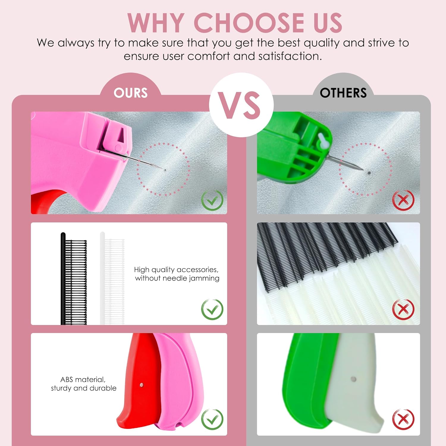 Stitch Gun for Clothes – Handheld Stitch Tag Gun Quick Clothing Fixer – Mini Sewing Kit Micro Tagging Gun – Includes 6 Needle, 1000 Black Fasteners & 1000 White Fasteners (Pink-Red)