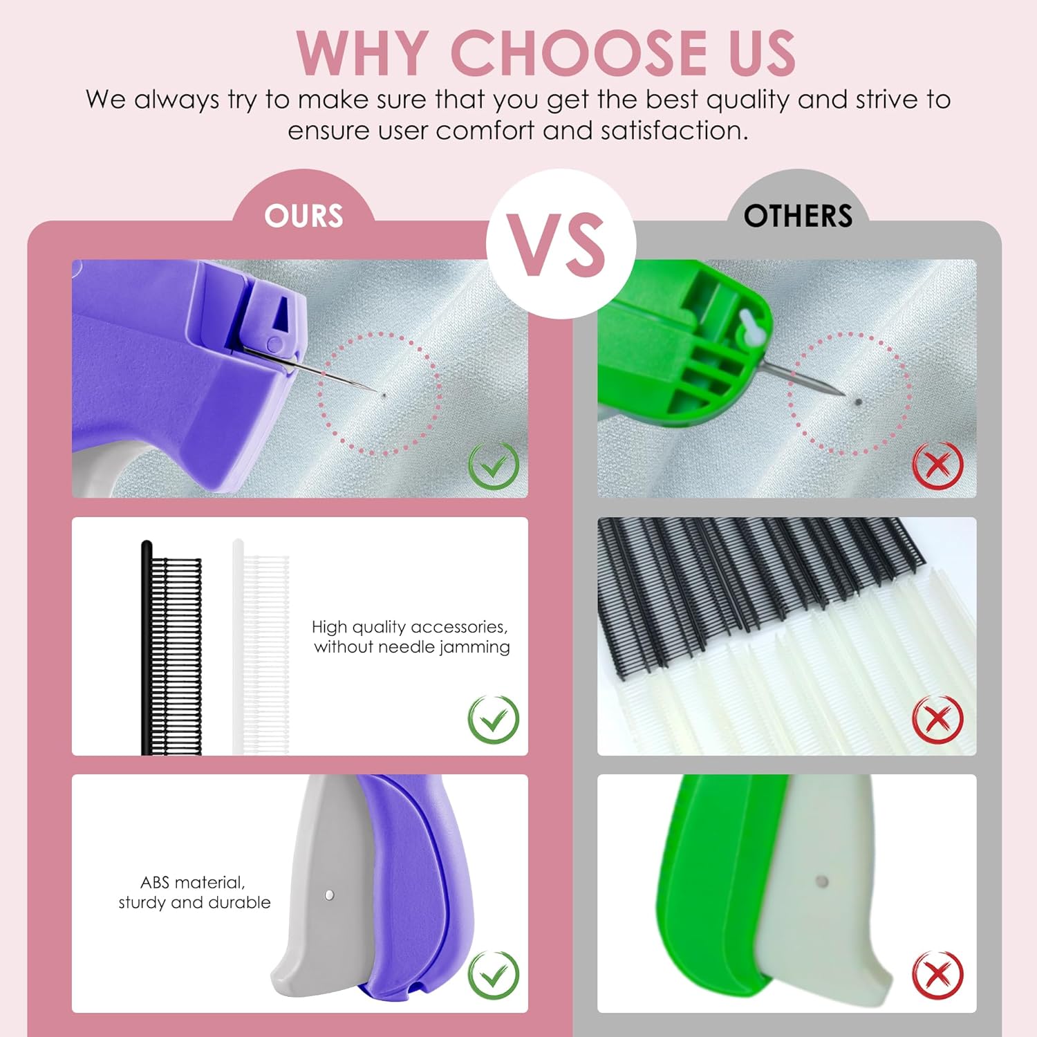 Excellent quality for the price. The needles are sharp, the fasteners are sturdy, and the trigger movement is smooth. Perfect for daily use in my thrift store.